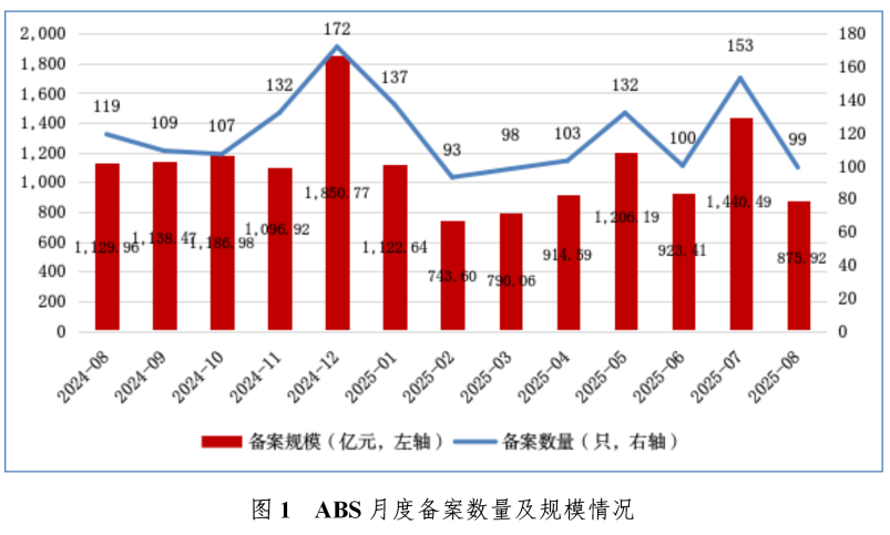 中基协发布的8月资产支持专项计划备案运行情况简报显示,2025年8月,资产支持专项计划(以下简称ABS)新增备案99只,新增备案规模合计875.92亿元。其中基础设施公募REITs所投ABS备案1只、17.23亿元。